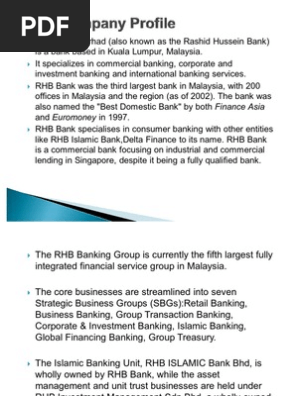 This company's trade report mainly contains market analysis, contact, trade partners, ports statistics, and trade area analysis. Rhb bank bhd, a 70% owned subsidiary of rhbcap, is a commercial bank with 185 branches located throughout malaysia. Are you looking for rhb islamic bank berhad swift code details?. Let's watch the launching ceremony of the islamic bank social financial initiative on wednesday, november 25, 2020, 10:30 am live on facebook bank islam and via zoom. Rhb capital was listed on the main board (now known as main market.
