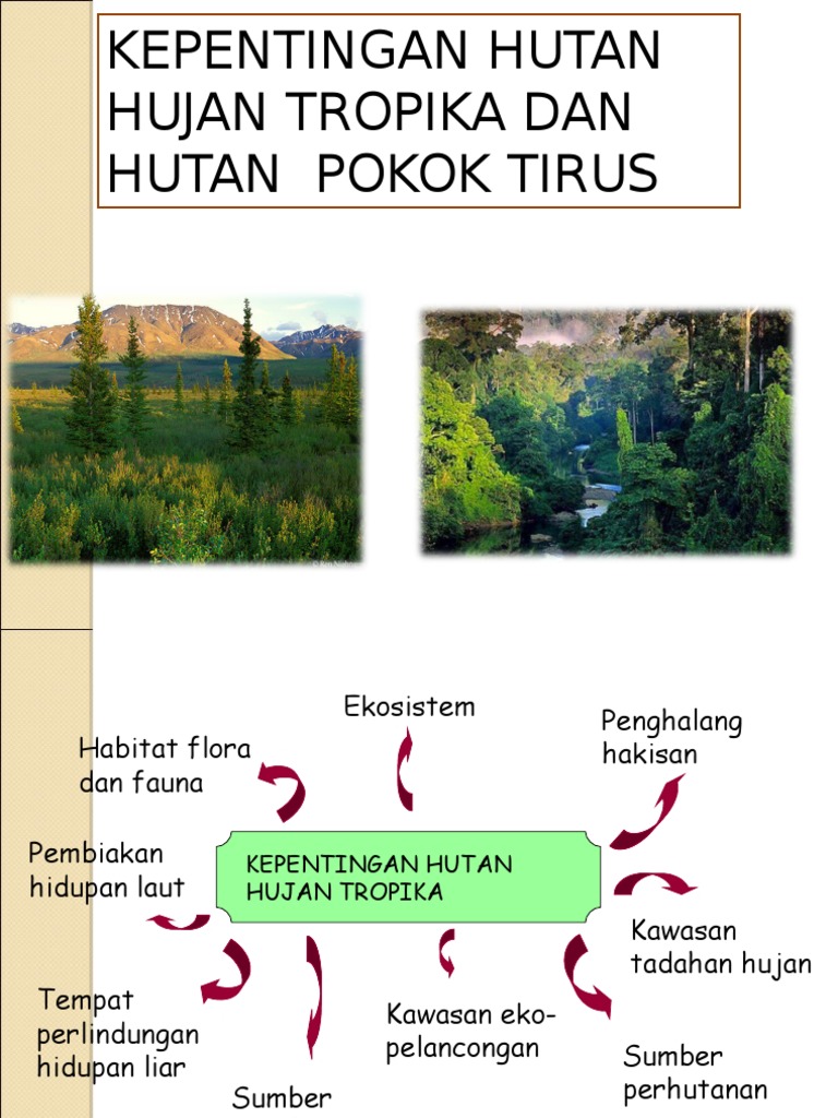 Menyerap karbon dioksida dan menghasilkan oksigen. • anggaran keluasan hutan pada tahun 1998 ialah semenanjung malaysia 44%, sabah 60% dan sarawak 80%. Hutan hujan tropikaadi saifuddinnurul aininanur afrinasaidatul akhmarlokasi hutan hujan tropika. Hidupan liar di hutan hujan tropika. Need to translate hutan hujan tropika from malay?